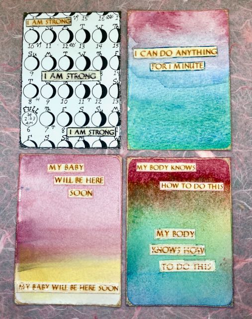 Following my Brave Girl card policy, I used backgrounds from what is left on my desk, and asked Mom to be to choose the affirmations.